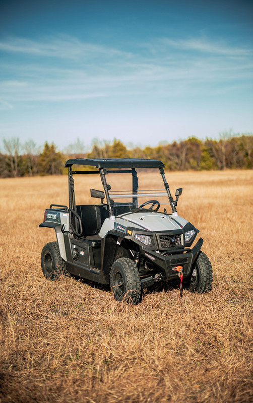 The Sector 250 is powered by a 229cc 4-Stroke – OHV Single Cylinder Engine with Low – High gears and Independent Dual A-Arm front suspension. Backed by a 1-Year Warranty, the Sector 250 comes equipped with a roof, windshield, turn signals, aluminum rims and a 2,500LB winch.